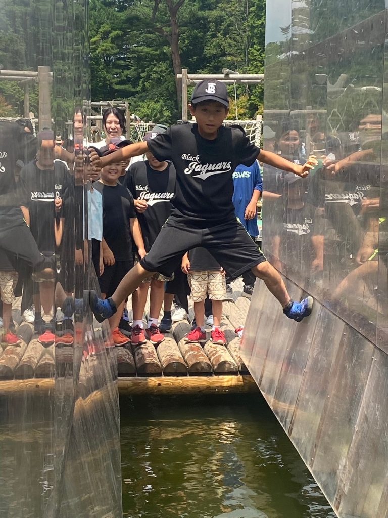 炎天下の中練習している子供達には六甲山は涼しくて、思う存分アスレチックを楽しんでいました