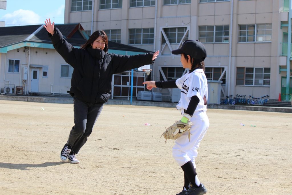 親子野球の後名残惜しそうに6年生は山本監督と最後のキャッチボールさせてもらいました⚾️